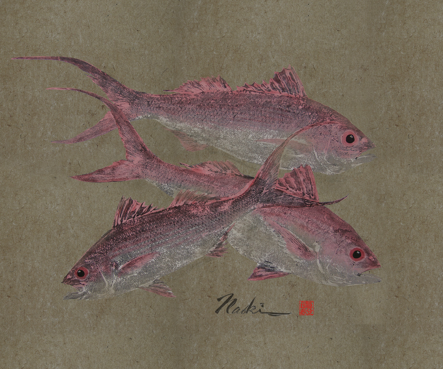 Naoki uses acrylic paints and Japanese shoji paper to make ephemeral gyotaku prints. His work opens a window into the underwater world, lovingly reproduced by Splashworks.
