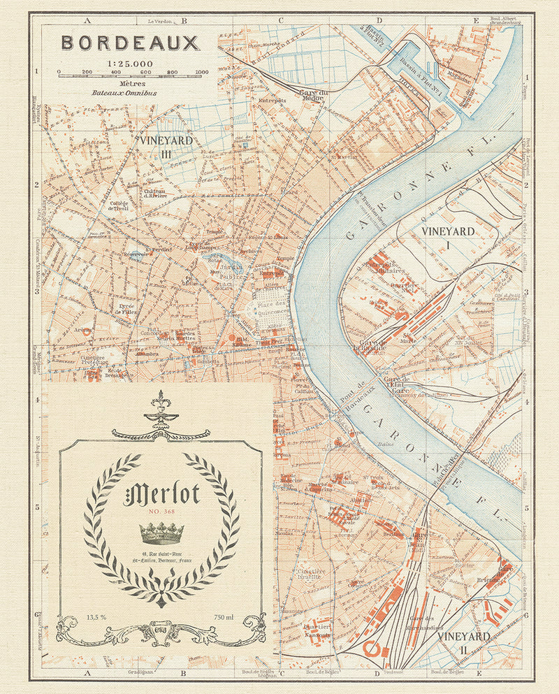For wine lovers everywhere! Wall art reproduction brings a century-old map of Bordeaux to life in the modern home. Perfect for home bars and commercial restaurants.
